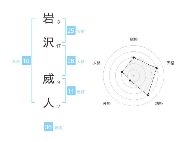 岩沢 威人さんの天格は25画の4点!