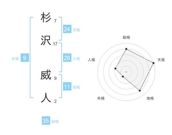 杉沢 威人さんを姓名の画数から五運を鑑定