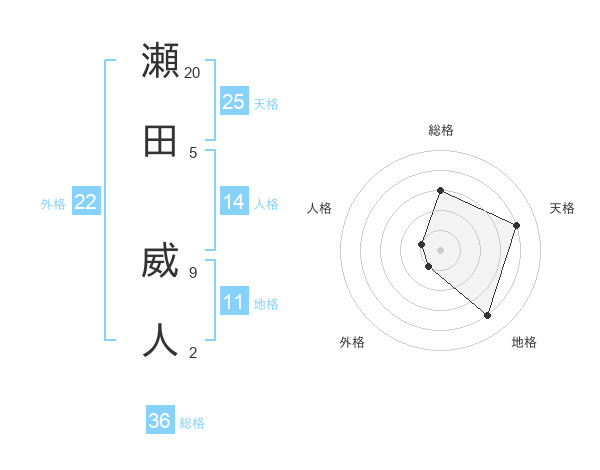 瀬田 威人さんを姓名の画数から五運を鑑定