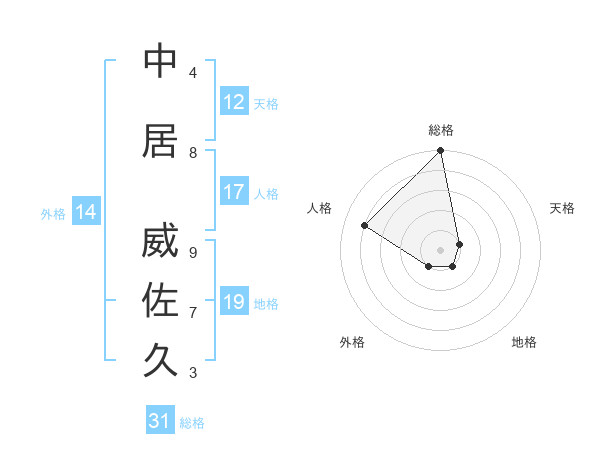 中居 威佐久さんを姓名の画数から五運を鑑定