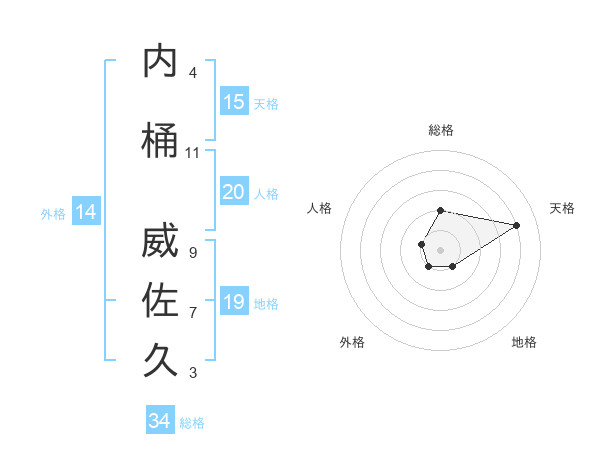 内桶 威佐久さんを姓名の画数から五運を鑑定