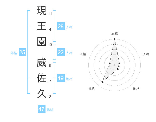 現王園 威佐久さんを姓名の画数から五運を鑑定
