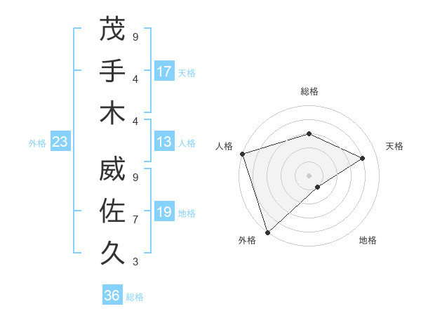 茂手木 威佐久さんを姓名の画数から五運を鑑定
