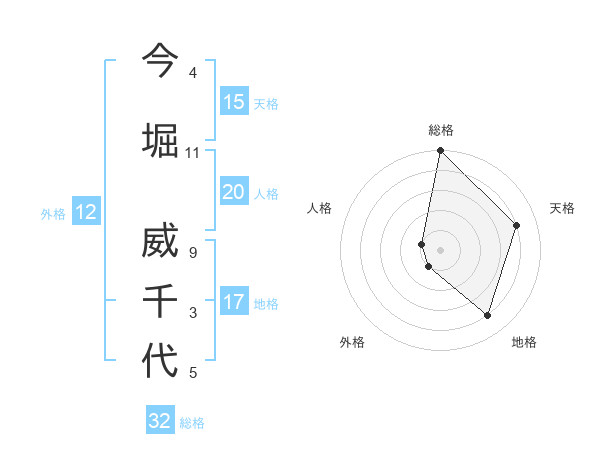 今堀 威千代さんを姓名の画数から五運を鑑定