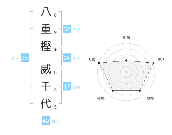 八重樫 威千代さんを姓名の画数から五運を鑑定