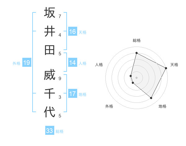 坂井田 威千代さんを姓名の画数から五運を鑑定