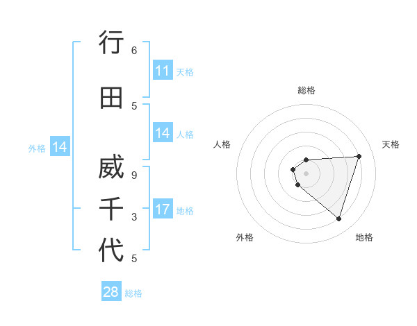 行田 威千代さんの天格は11画の4点!