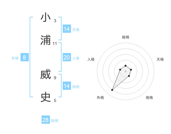 小浦 威史さんの総格は28画の1点!