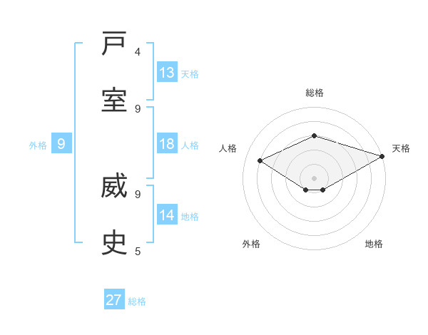 戸室 威史さんの総格は27画の3点!