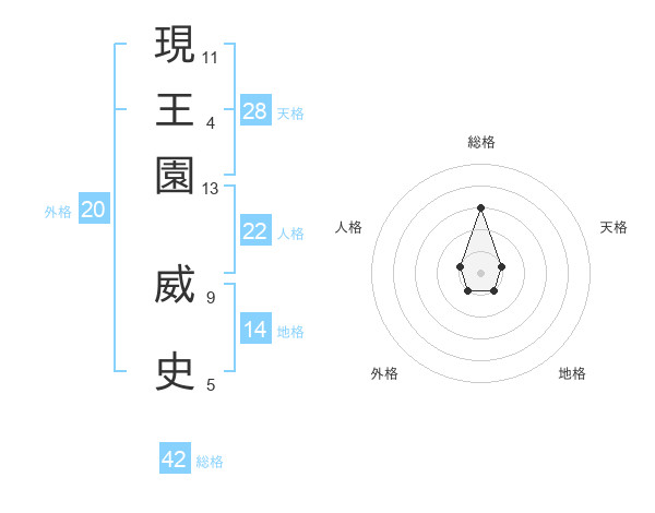 現王園 威史さんの総格は42画の3点!