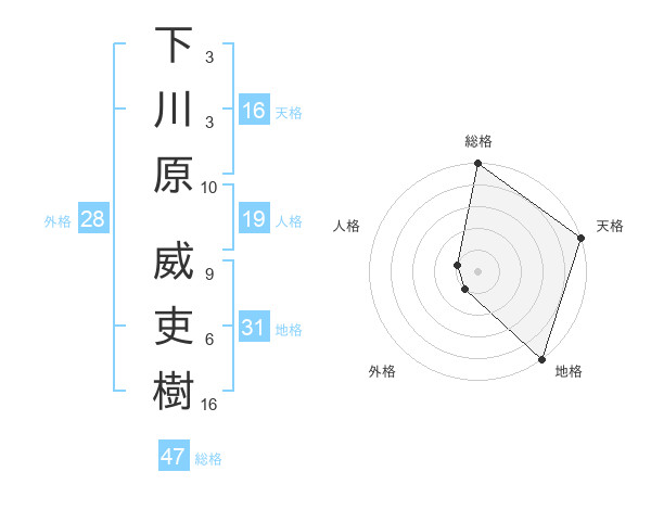 下川原 威吏樹さんを姓名の画数から五運を鑑定