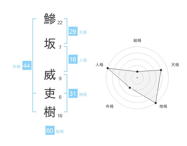 鰺坂 威吏樹さんを姓名の画数から五運を鑑定