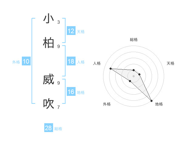 小柏 威吹さんの天格は12画の1点!
