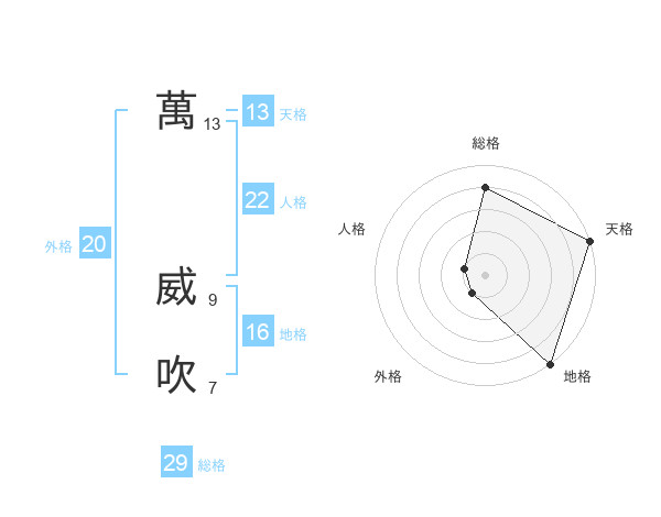 萬 威吹さんの総格は29画の4点!