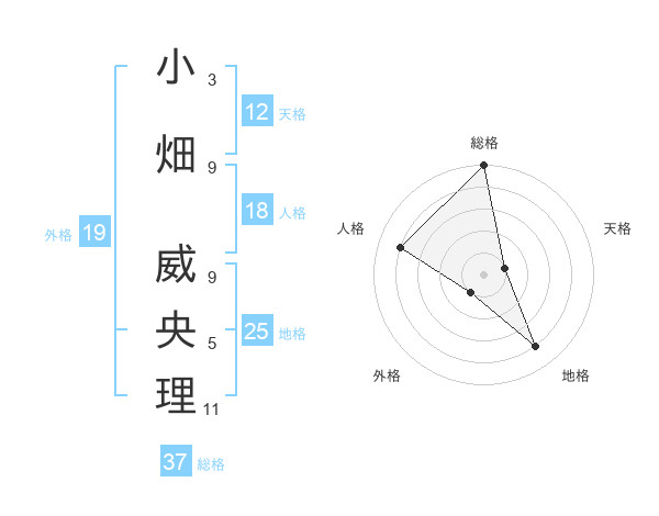 小畑 威央理さんの天格は12画の1点!