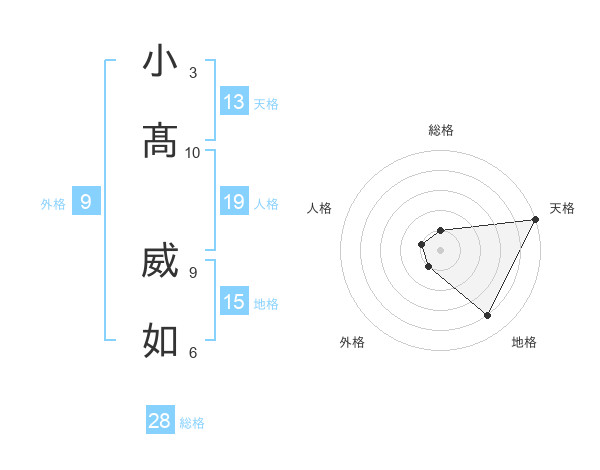 小髙 威如さんを姓名の画数から五運を鑑定