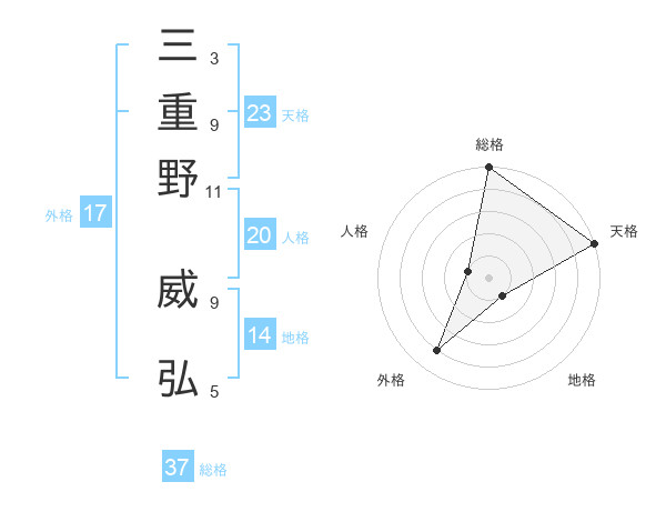 三重野 威弘さんを姓名の画数から五運を鑑定