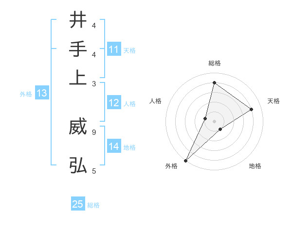 井手上 威弘さんを姓名の画数から五運を鑑定