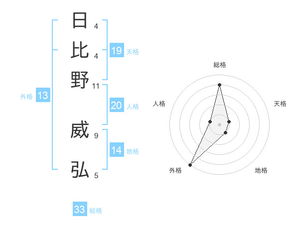 日比野 威弘さんを姓名の画数から五運を鑑定