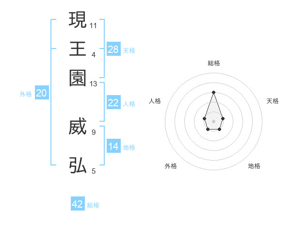 現王園 威弘さんの総格は42画の3点!