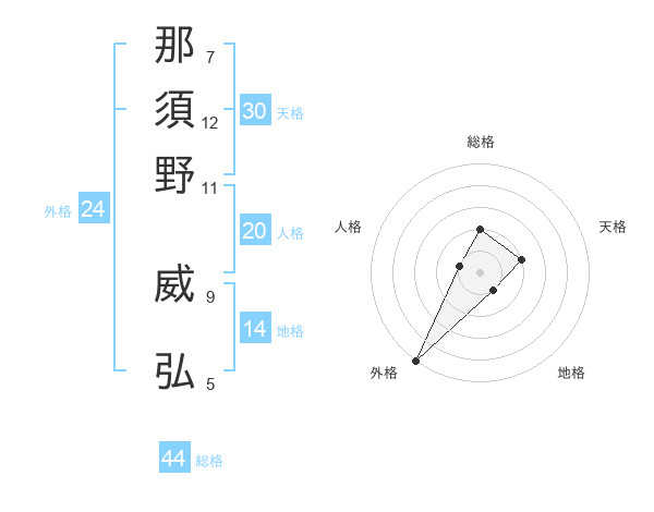 那須野 威弘さんを姓名の画数から五運を鑑定