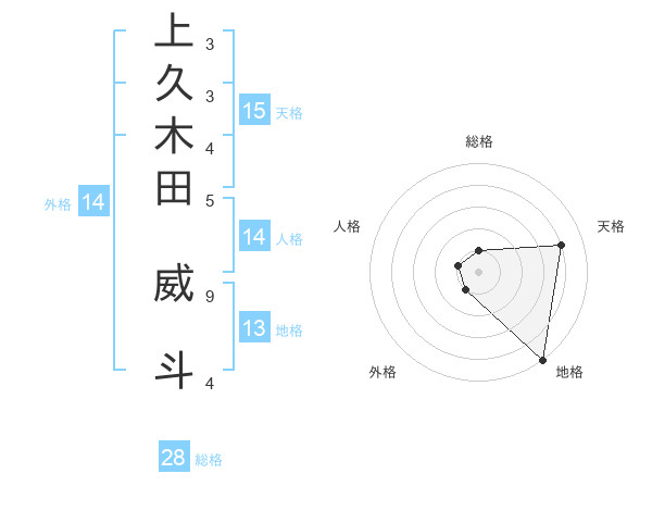 上久木田 威斗さんを姓名の画数から五運を鑑定