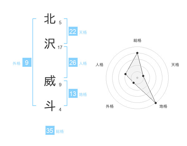 北沢 威斗さんを姓名の画数から五運を鑑定