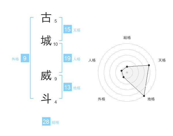 古城 威斗さんを姓名の画数から五運を鑑定