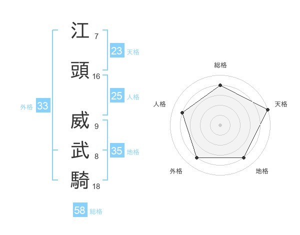 江頭 威武騎さんを姓名の画数から五運を鑑定
