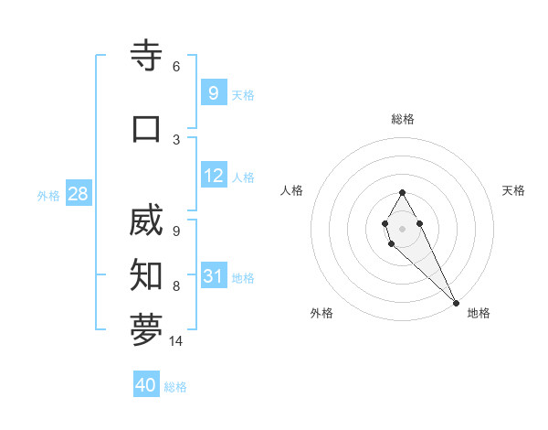 寺口 威知夢さんを姓名の画数から五運を鑑定