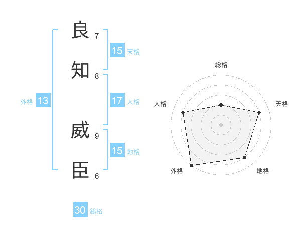 良知 威臣さんの総格は30画の2点!