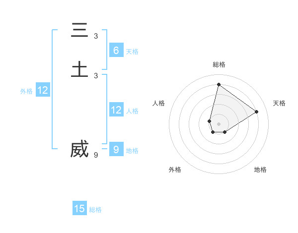 三土 威さんの総格は15画の4点!