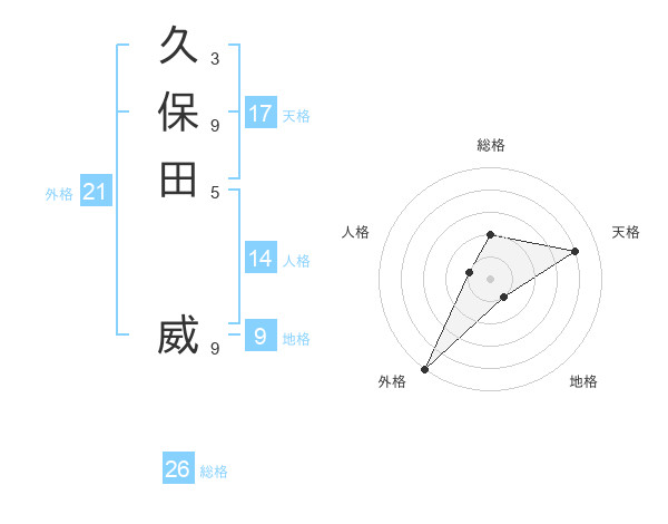 久保田 威さんの天格は17画の4点!