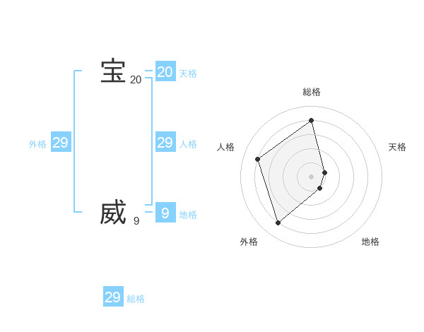 宝 威さんの総格は29画の4点!