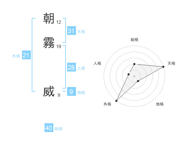 朝霧 威さんの天格は31画の5点!