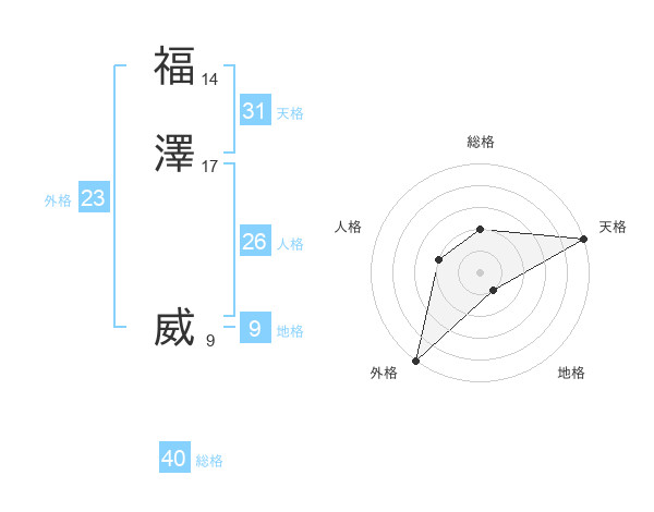 福澤 威さんの天格は31画の5点!