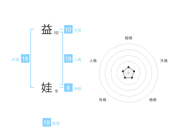 益 娃さんの総格は19画の1点!