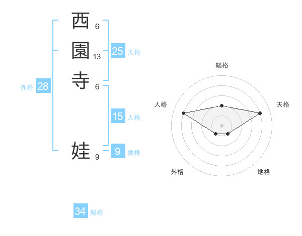 西園寺 娃さんを姓名の画数から五運を鑑定