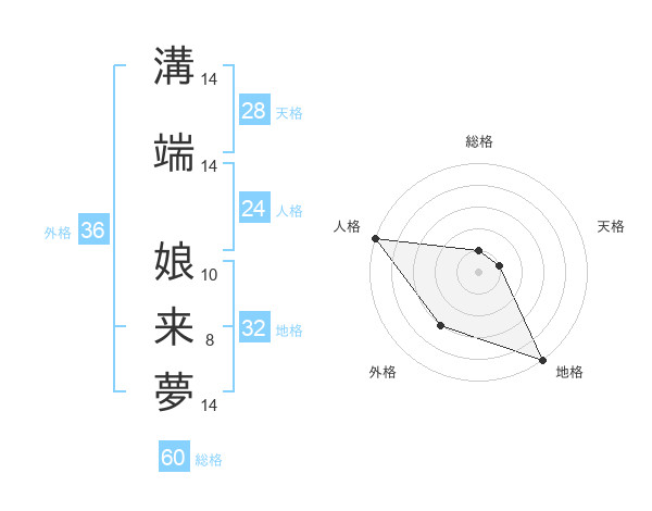 溝端 娘来夢さんの総格は60画の1点!