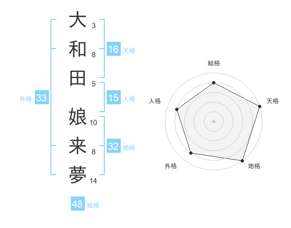 大和田 娘来夢さんを姓名の画数から五運を鑑定