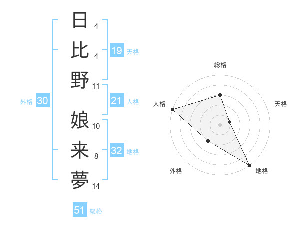 日比野 娘来夢さんを姓名の画数から五運を鑑定