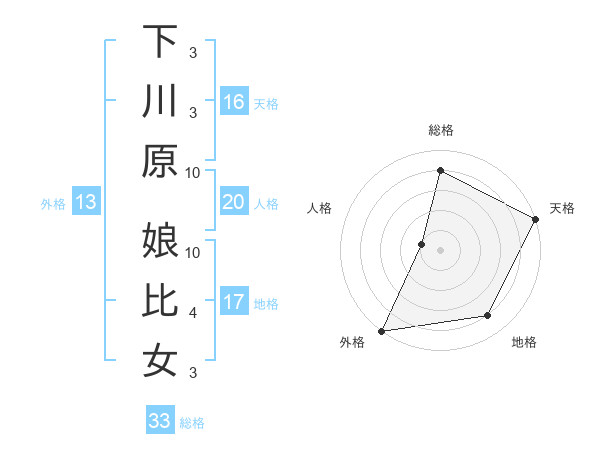 下川原 娘比女さんを姓名の画数から五運を鑑定