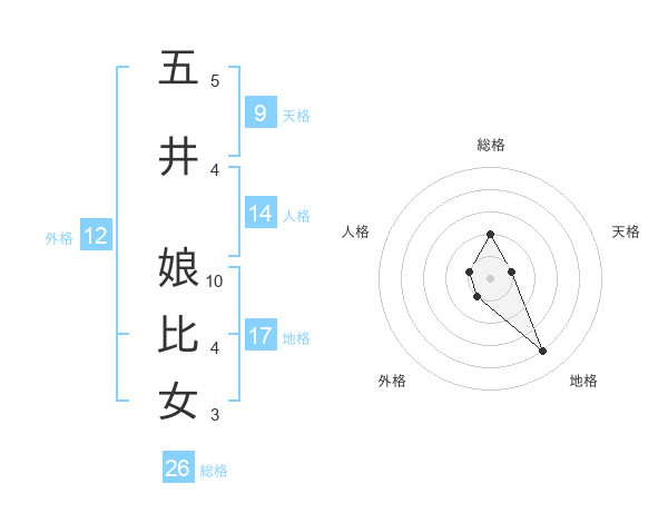 五井 娘比女さんを姓名の画数から五運を鑑定