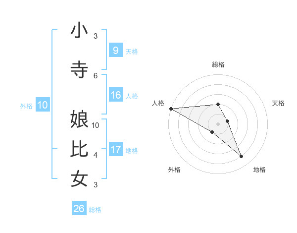 小寺 娘比女さんを姓名の画数から五運を鑑定