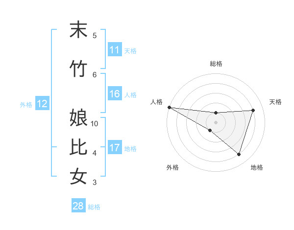 末竹 娘比女さんを姓名の画数から五運を鑑定