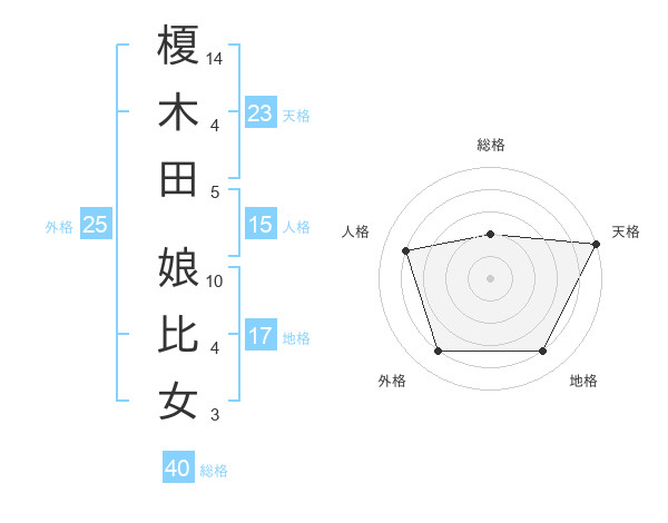 榎木田 娘比女さんを姓名の画数から五運を鑑定