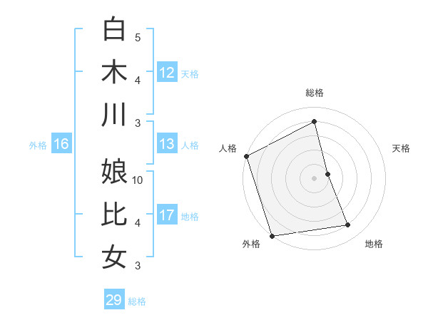 白木川 娘比女さんを姓名の画数から五運を鑑定