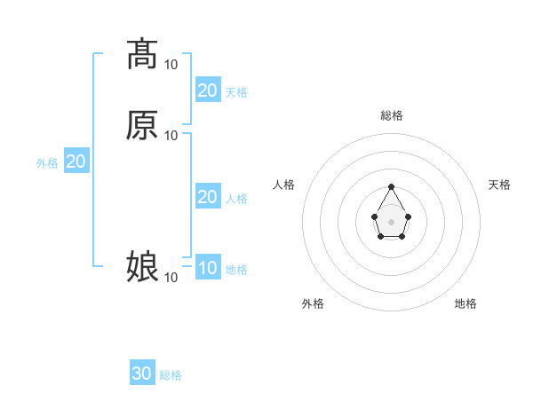 髙原 娘さんの総格は30画の2点!