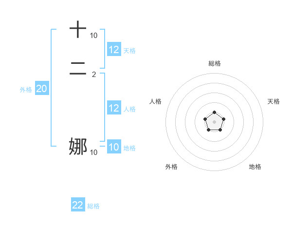 十二 娜さんの総格は22画の1点!