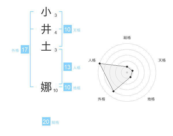 小井土 娜さんの総格は20画の1点!